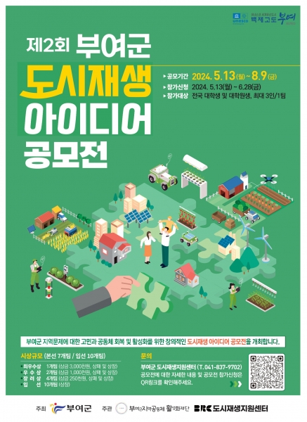 ‘제2회 부여군 도시재생 아이디어 공모전’의 자세한 내용은 부여군지역공동체활성화재단 홈페이지의 공모 요강을 통해 확인할 수 있다.