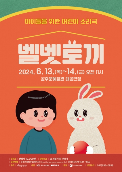 [충청뉴스큐] 오는 6월 13일(목) 어린이소리극 ‘벨벳토끼’ 공연이 공주문예회관 대공연장 무대에 오른다. (사진제공)