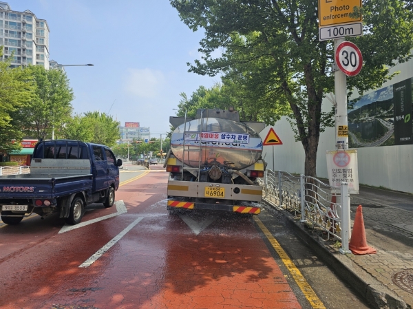 또한, 시가지 도로 및 시내 폭염취약 지역에 살수차를 이용한 도로 살수작업을 통해 도로 복사열을 낮추는 등 폭염 저감을 위해 노력할 방침이다.