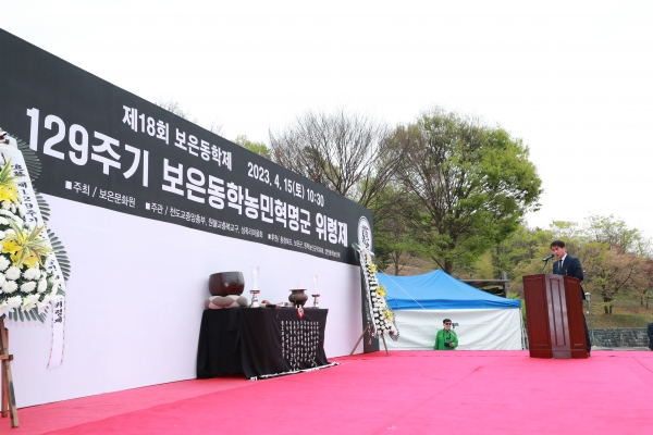 최재형 보은군수는 “민족 최초이자, 역사상 가장 큰 민중 집회인 동학이 이곳 보은에서 불피웠다는 그 사실이 무척이나 자랑스럽다”며 “동학의 숭고한 뜻을 마음 깊이 새기고 자유와 평등을 이루고자 했던 선열들의 뜻을 후손들에게 전달될 수 있도록 노력하겠다”고 말했다.