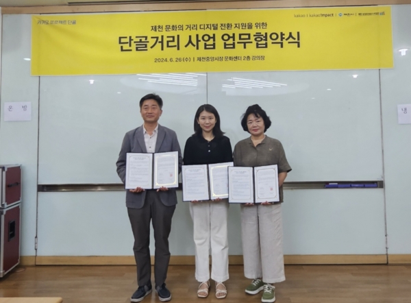 이에 지난 26일 제천시 상권르네상스사업단과 카카오, 문화의 거리 상점가는 제천 문화의 거리 디지털 전환 지원을 위한 ‘단골거리 사업 업무협약’을 체결하고 본격적인 디지털 전환사업에 돌입했다.