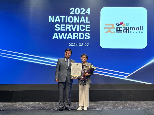 [충청뉴스큐] 부여군의 공식 농특산물 온라인 쇼핑몰 “굿뜨래몰”이 산업정책연구원이 주최하는 ‘2024년 국가서비스대상’ 농특산물 쇼핑몰 부문에서 2년 연속 대상을 수상했다고 27일 밝혔다.