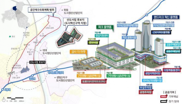 ‘공간재구조화 계획’이란 공간혁신구역 계획 및 주변 지역의 토지 이용, 교통, 기반시설, 경관 등에 미치는 영향을 사전에 검토하는 계획이다.