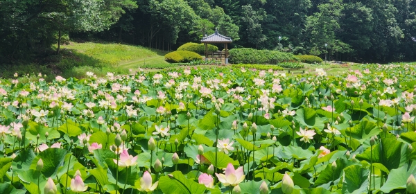 [충청뉴스큐] 보은군 속리산국립공원 입구에 있는 속리산 연꽃단지에 수 천 송이의 연꽃이 꽃을 피우며 속리산을 방문한 관광객들에게 또 다른 볼거리를 제공하고 있다.