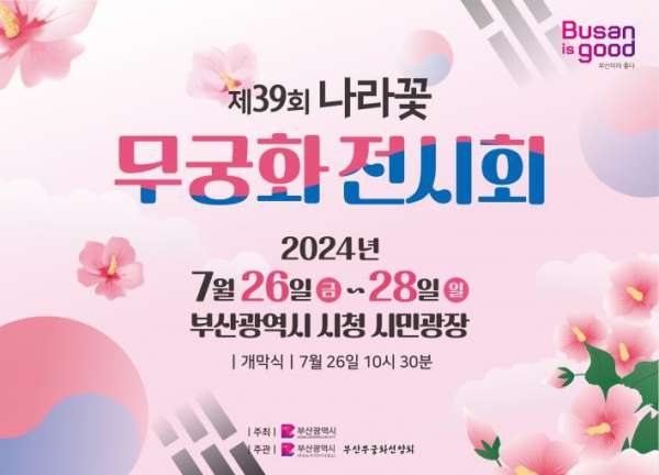 [충청뉴스큐] 부산시 푸른도시가꾸기사업소는 오는 26일부터 7월 28일까지 시청 앞 시민광장 일원에서 ‘제39회 나라꽃 무궁화 전시회’를 개최한다고 밝혔다.