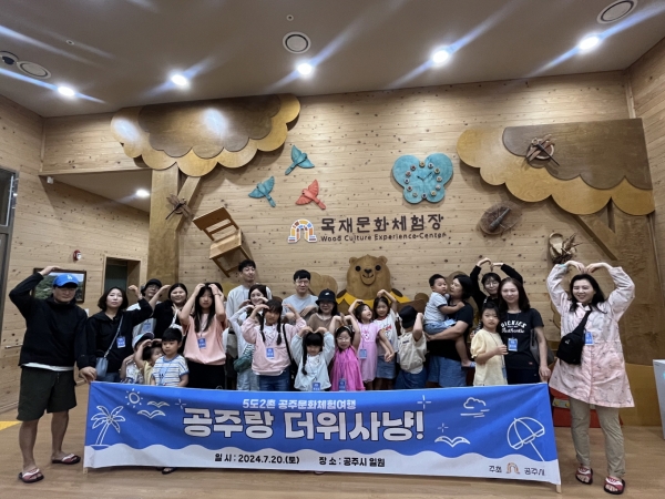 지난 5월 석장리 구석기축제와 마곡사 신록축제, 6월에는 유구색동수국정원 꽃 축제와 연미산 자연미술공원 등을 방문한데 이어 지난 주말에는 ‘공주랑 더위사냥’을 주제로 여름방학 맞이 물놀이와 목재체험 프로그램을 진행했다.