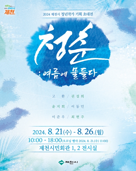 [충청뉴스큐] 제천시에서 주최주관하는 제천시 청년작가 발굴 기획 초대전 ‘청춘: 여름에 물들다’ 가 8월 21일부터 26일까지 제천시민회관 1, 2 전시실에서 개최된다.