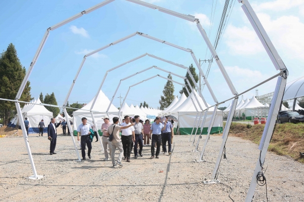 김기웅 군수는 이번에 위치를 변경한 축제장 주무대와 체험 공간을 먼저 점검하고 관람객 이동 동선을 직접 확인하며 철저한 안전관리를 주문했다.