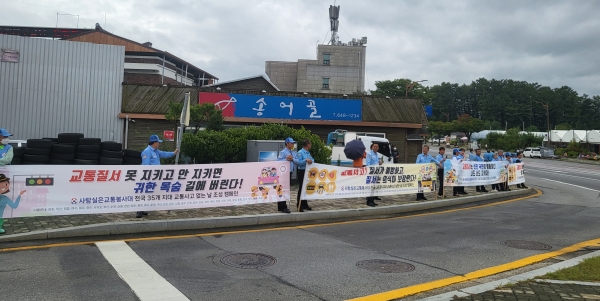 특히 이번 캠페인은 사랑실은교통봉사대 전국 순회 교통캠페인의 일환으로 300여명의 회원들이 참석한 가운데 보행자 사고 예방, 보행자 중심 교통문화 정책 분위기 조성을 위해 전개했다.
