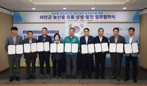 협약서에 따르면, 태안군과 농협 등 관계기관은 조공법인의 원활한 설립과 안정적 발전을 위해 전문화된 판매 사업체계를 확립하고 역량 강화에도 나설 예정이다.