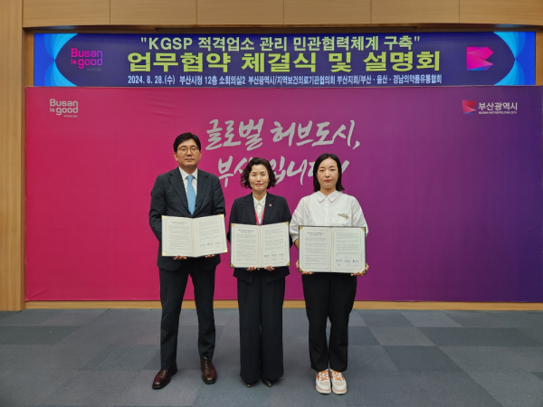 [충청뉴스큐] 부산시는 어제 오후 4시 시청 대회의실에서 지역보건의료기관협의회 부산지회, 부산·울산·경남 의약품유통협회와 ‘KGSP 적격업소 관리 민관협력체계 구축 업무협약’을 체결했다고 밝혔다.