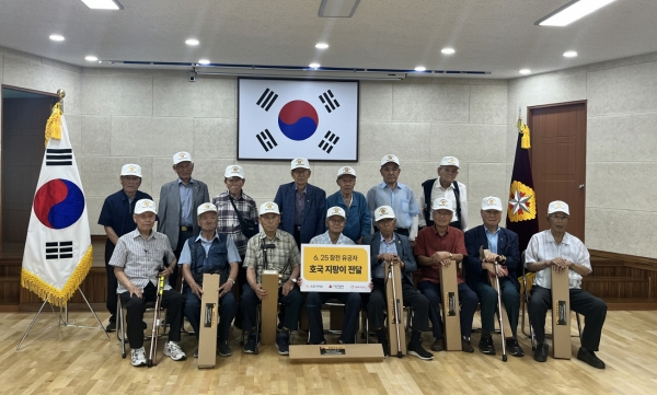 [충청뉴스큐] 공주시는 지난 28일 해피피플에서 공주시 6.25참전유공자에 호국 지팡이를 전달했다고 밝혔다.