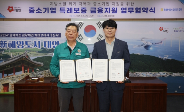 [충청뉴스큐] 태안군이 NH농협 태안군지부와 손잡고 관내 중소기업을 위한 특례보증 금융 지원에 나선다.