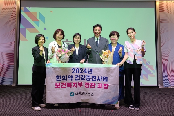 [충청뉴스큐] 부여군은 지난 6일 “2024년 한의약건강증진사업 성과대회”에서 우수기관으로 선정되어 보건복지부 장관상을 받았다고 밝혔다.