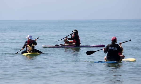 태안을 대표하는 만리포 해수욕장에서 반려견과 함께 물놀이를 즐길 수 있으며 패들보드와 도가 체험도 함께 진행된다.