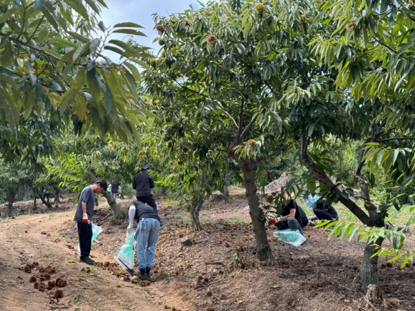 지난 10일에는 산림공원과와 교통과 직원 20여명이 사곡면 가교리 밤 재배지를 찾아 알밤을 수확하며 구슬땀을 흘렸다.