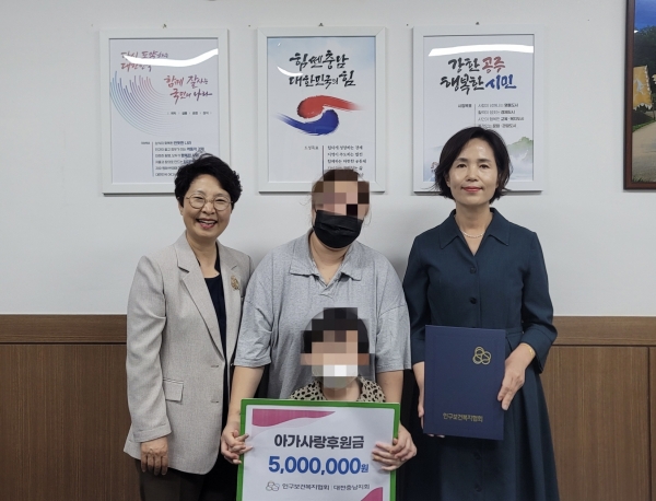 [충청뉴스큐] 공주시는 지난 19일 인구보건복지협회 아가사랑 후원회에서 주관하는 후원금 지원 대상 가구에 아가사랑 후원금 500만원을 전달했다고 밝혔다.