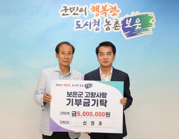 [충청뉴스큐] 경상남도 밀양시에 거주하는 신영호 씨는 지난 7일 보은군청을 방문해 보은군의 군정 발전을 위해 사용해 달라며 고향사랑기부금 500만원을 기탁했다.