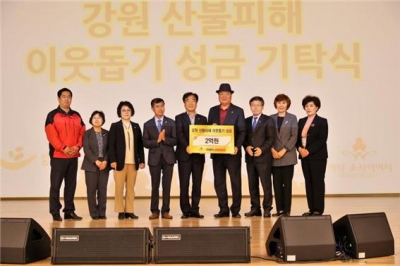 [충청뉴스큐] 지난 24일 오후 3시 철원군 ㈜그래미에서 개최한 ‘2019년 강원여성 지도자 역량강화 워크숍’개회식에서 ㈜그래미 남종현 회장이 산불피해로 고통받고 있는 5개 시군에 2억원의 성금을 사회복지공동모금회를 통해 전달했다.