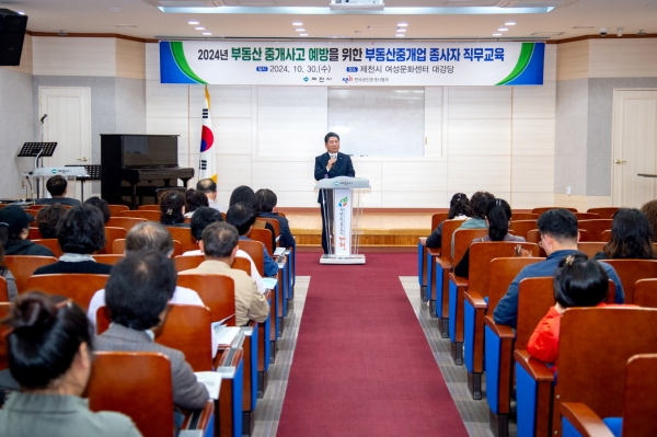 제천시 관계자는 “이번 직무교육을 통해 직업윤리와 전문성을 강화해 개업공인중개사 등이 부동산 거래사고로부터 제천시민을 보호하고 시민들에게 질 높은 부동산 중개 서비스를 제공하길 바란다”고 밝혔다.