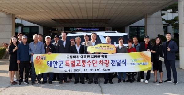 군은 지난 10월 31일 군청 현관 앞에서 가세로 군수와 이종만 태안지체장애인협회장 등 15명이 참석한 가운데 ‘교통약자 특수차량 전달식’을 갖고 휠체어 사용이 가능한 특수개조 차량 1대를 협회에 전달했다고 밝혔다.