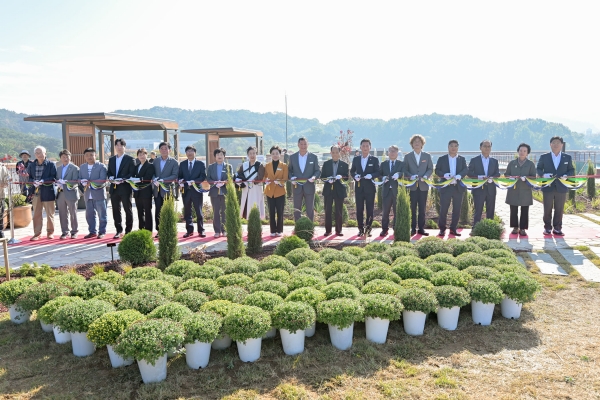 치유정원은 이용객들에게 휴식과 여유의 시간을 제공하기 위한 벤치 공간과 화사한 꽃과 나무를 식재한 텃밭 공간, 그리고 정원문화 행사와 치유농업 프로그램 운영 등을 위한 잔디 공간 등으로 조성됐다.