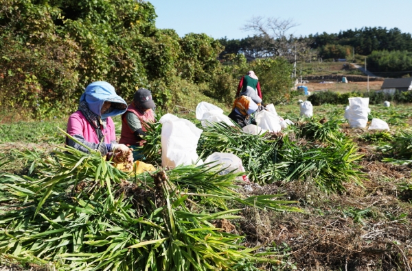 [충청뉴스큐] 태안반도의 비옥한 황토에서 갯바람을 맞고 자란 태안산 생강이 이달 초부터 본격적인 출하에 돌입했다.