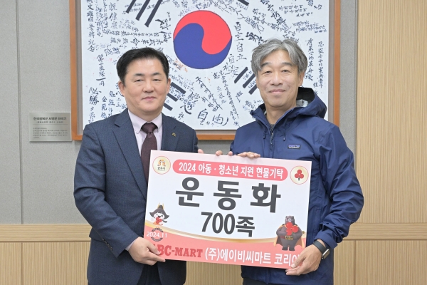 [충청뉴스큐] 공주시는 지난 7일 ㈜에이비씨마트 코리아에서 공주시 아동·청소년을 위해 700족의 운동화를 기탁했다고 밝혔다.