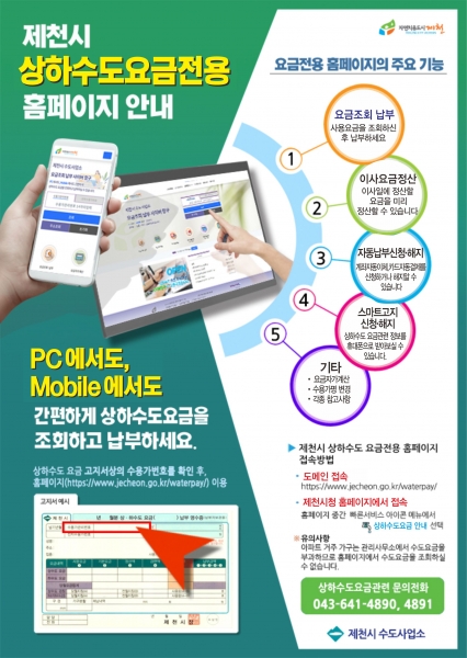[충청뉴스큐] 제천시가 상하수도 요금을 PC나 스마트폰으로 간편하게 조회 및 납부할 수 있도록 홈페이지를 운영한다.
