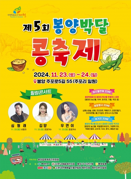 [충청뉴스큐] 전 국민의 애창곡인 ‘울고 넘는 박달재’로 유명한 제천시 봉양읍에서 11월 23일부터 24일까지 2일간 봉양읍 주포리 문화복지센터 일원에서 ‘제5회 봉양 박달콩 축제’ 가 개최된다.