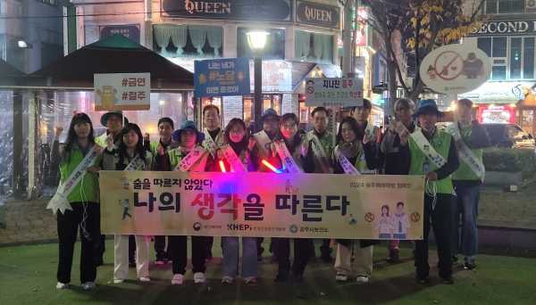 [충청뉴스큐] 공주시가 11월 음주폐해예방의 달을 맞아 ‘술을 따르지 않았다, 나의 생각을 따른다’를 주제로 신관동 먹자골목 일원에서 지난 14일 캠페인을 실시했다.