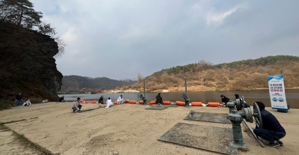 훈련 내용으로는 취수구 부근 오일펜스 설치를 실시해, 정수장에 유입된 기름 제거 및 수질분석을 통한 오염도 확인을 실시하는 등 실제 상황 발생 시 조치 방법에 대해 훈련을 진행했다.