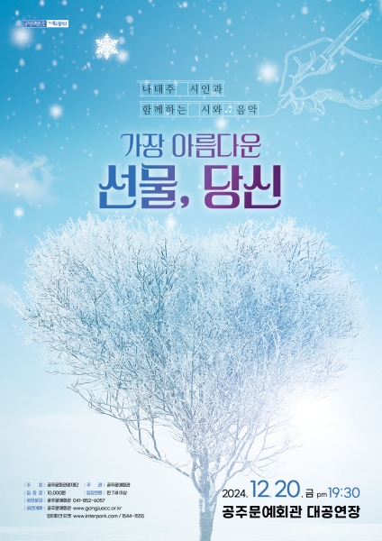 겨울밤, 시인의 섬세한 언어와 다양한 음악가들이 들려주는 풀꽃 시인의 서정적인 시에 어울리는 감미로운 멜로디가 공주문예회관을 찾는 관객들의 마음을 따뜻하게 어루만져 줄 예정이다.