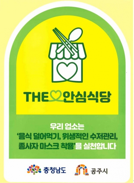[충청뉴스큐] 공주시는 ‘공용 음식을 개인 수저로 떠먹는 행위’ 등 감염병에 취약한 식사 문화를 개선하고 생활방역을 강화하기 위해 안심식당을 지정해 운영하고 있다고 3일 밝혔다.