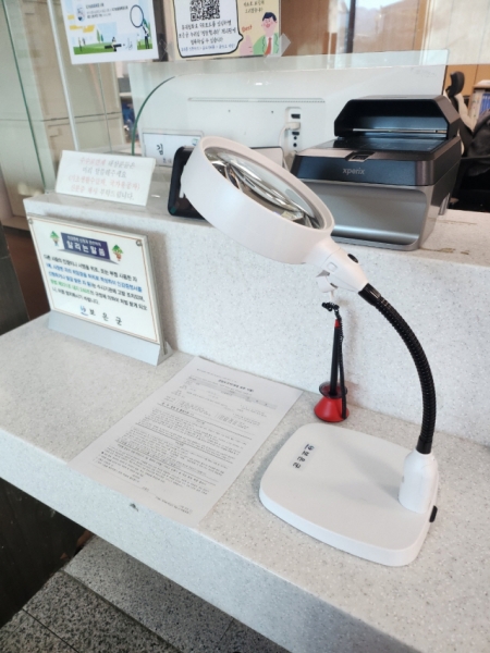 이에 군은 8배율 LED 확대경으로 일원화해 비치해 눈이 불편한 민원인도 쉽게 민원 업무를 보고 관리가 용이하도록 했다.