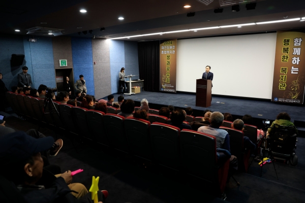 [충청뉴스큐] 대한불교조계종사회복지재단 제천장애인종합복지관에서는 지난 4일 제천영상미디어센터 봄 상영관에서 ‘함께하는 행복한 복지관’ 이라는 부제로 후원자 및 자원봉사자, 복지관 이용인 120여명이 참여해 2024년 성과공유회를 진행했다.