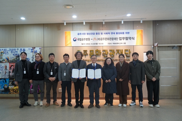 공주문화관광재단 김지광 대표이사는 “이번 업무협약을 통해 공주 시민들의 정신건강이 증진될 수 있도록 문화적으로 힘쓰고 국립공주병원과 지속적인 협력관계를 유지해 나가겠다”고 말했다.