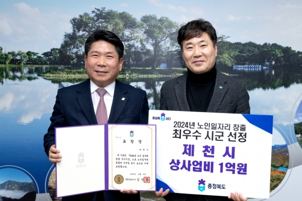 [충청뉴스큐] 제천시가 2024년 노인일자리 창출 우수 시군평가에서 ‘3년 연속 민간부문 최우수 기관으로 선정’되어 기관표창 및 상사업비 1억원을 확보했다고 지난 7일 밝혔다.