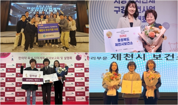 제천시보건소는 생애주기에 맞는 사전예방적 구강보건사업 운영 성과를 인정받은 2024년 지역사회 구강보건사업 보건복지부 장관상 수상을 시작으로 2024년 한의약 육성 지역 계획 우수사례 공모전에서도 연달아 보건복지부 장관상을 수상했다.