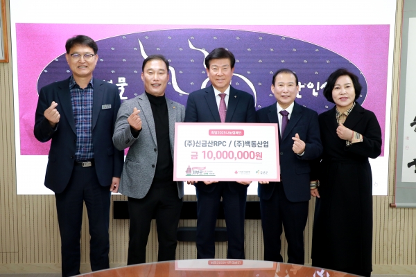 이수현 신금산미곡종합처리장 회장과 이영규 백동산업 대표는 이날 금산군청을 찾아 연말연시 이웃사랑으로 성금 1000만원을 기탁했다.