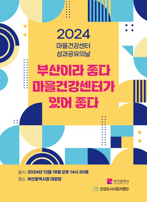 [충청뉴스큐] 부산시는 내일 오후 2시 30분 시청 1층 대강당에서 ‘2024년 마을건강센터 사업 성과공유의 날’을 개최한다고 밝혔다.