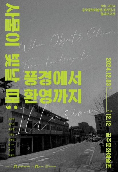[충청뉴스큐] 공주문화관광재단은 공주문화예술촌 레지던시 8기 입주작가의 프로그램을 마무리하는 결과보고 전시회 ‘사물이 빛날 때_풍경에서 환영까지’를 12월 3일부터 12월 12일까지 진행됐다.