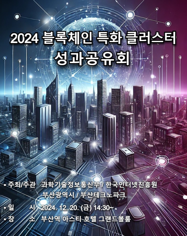 이러한 ‘블록체인 특화 클러스터 조성’ 사업의 주요 성과와 성공사례를 공유·확산하기 위해 오늘 오후 2시 30분 아스티호텔 부산에서 성과공유회가 개최된다.