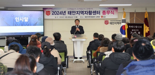 [충청뉴스큐] 태안지역자활센터가 지난 20일 센터 지하교육장에서 가세로 군수와 군의원, 센터 종사자 및 참여자 등 100여명이 참석한 가운데 ‘2024년 태안지역자활센터 종무식’을 갖고 올 한해의 마무리를 알렸다.