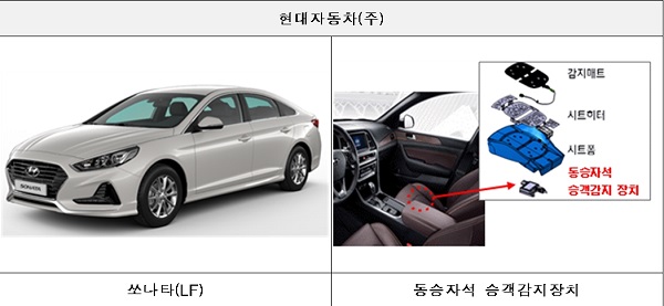 현대자동차에서 제작하여 판매한 쏘나타 1,604대는 동승자석 승객감지장치의 프로그램 오류로 동승자석에 유아용 카시트를 장착하더라도 성인이 탑승한 것으로 잘못 인식하여 사고 발생 시 에어백이 전개되어 탑승한 유아가 다칠 가능성이 확인됐다.