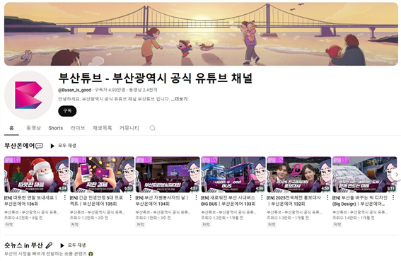박광명 시 대변인은 “부산 웹툰 작가들과의 협업으로 웹툰 페스티벌이 열리는 도시 부산의 매력을 전국적으로 알릴 수 있기를 기대한다”며 “'부산튜브'는 부산을 대표하는 시민 소통 채널인 만큼 이번 채널아트 이벤트를 통해 보다 적극적으로 소통하고 공감하는 채널이 되도록 노력하겠다 2025년을 맞아 더욱 다채롭게 기획 중인 '부산튜브' 콘텐츠에도 많은 관심을 바란다”고 밝혔다.