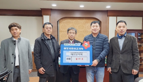 [충청뉴스큐] 건설기계개별연명사업자협의회 태안군지회가 설 명절을 앞두고 태안군에 ‘사랑의 쌀’을 기탁하며 지역 사랑의 마음을 전했다.