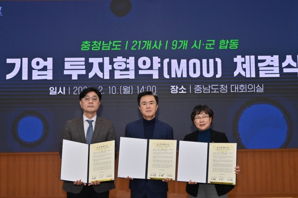 [충청뉴스큐] 부여군은 지난 10일 충남도청 대회의실에서 김태흠 충청남도지사와 홍은아 부군수, 박종구 부여바이오㈜ 대표이사 등이 참석한 가운데 합동 투자협약을 체결했다.
