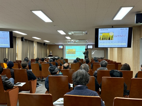 이번 교육은 충남농업기술원 연구개발국 소속 윤여태 박사를 강사로 초빙해 진행됐으며 품종 선택, 육묘 및 이앙, 병해충 관리 등에 대한 내용이 다뤄졌다.