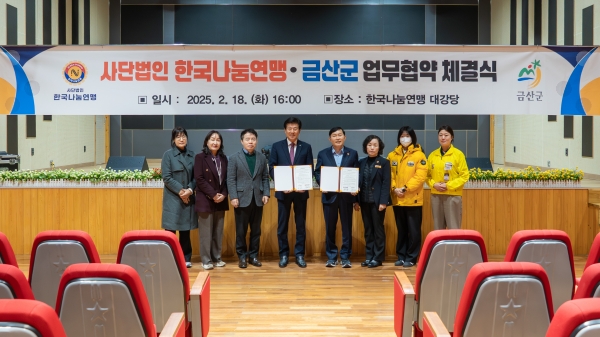 [충청뉴스큐] 금산군은 지난 18일 경북 김천시 한국효문화관에서 한국나눔연맹과 나눔문화 확산 및 지역사회 복지 강화를 위한 업무협약을 체결했다.